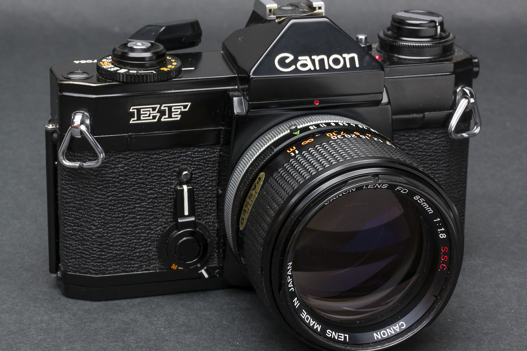 Canon EF with Canon FD 85mm f/1.8 S.S.C.